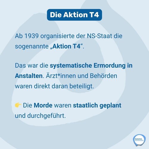 Ab 1939 organisierte der NS-Staat diese Verbrechen im Rahmen der sogenannten „Aktion T4“.