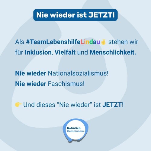 Die Lebenshilfe Lindau hat als Partner des Aktionsbündnisses ihr Leitmotiv „Natürlich.Gemeinsam“ entsprechend erweitert. Unter dem Motto „Natürlich.Gemeinsam. für Vielfalt und Demokratie“ sind in der kommenden Woche zwei konkrete Projekte geplant.